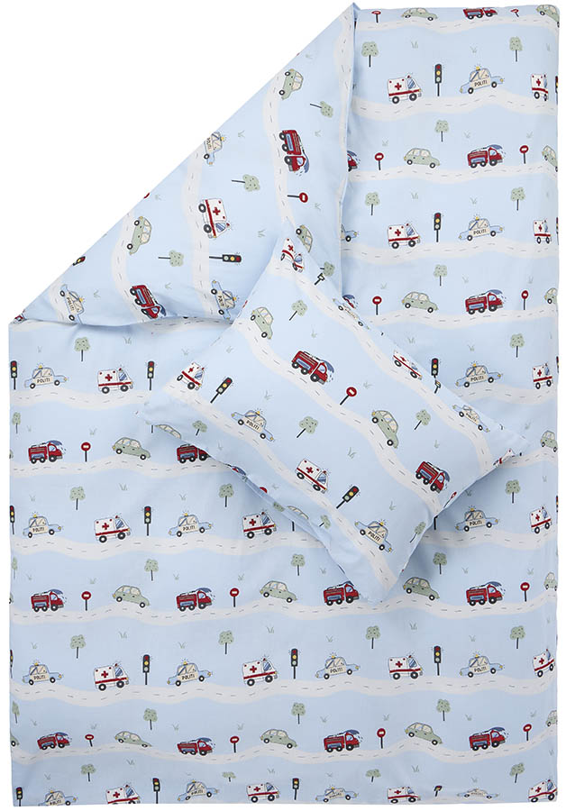 Barnesengesett til juniorseng, laget av myk bomull. Sengesettet er trykket med politibiler, lastebiler og andre morsomme kjøretøy – et lekent design som garantert vil glede både små og store barn. Finnes i flere størrelser.