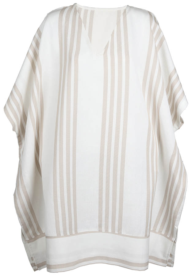 Den lyse fargen med delikate striper gir et tidløst og sommerlig uttrykk. En fin og praktisk kaftan som kombinerer komfort og stil.
