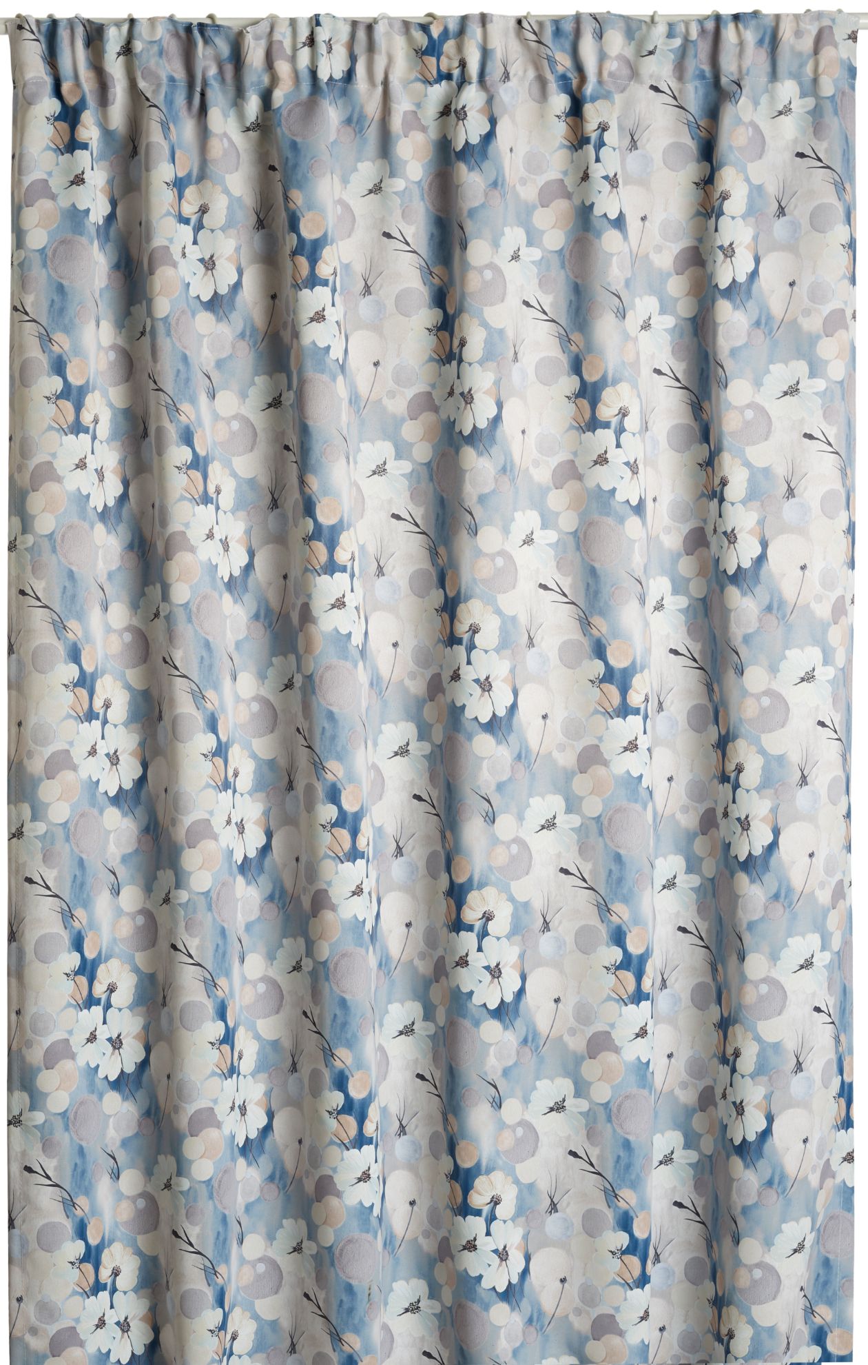 Mønstret gardin i lysdempende kvalitet. Gardinen har et elegant floralt design i delikate nyanser av blå og beige. Den digitale trykkteknikken gir fargene ekstra intensitet og fremhever mønsterets detaljer. En perfekt kombinasjon av stil og funksjonalitet, ideell for stue, soverom eller kontor. Gardinen henges opp med rynkebåndskroker, enten på stang eller skinne.