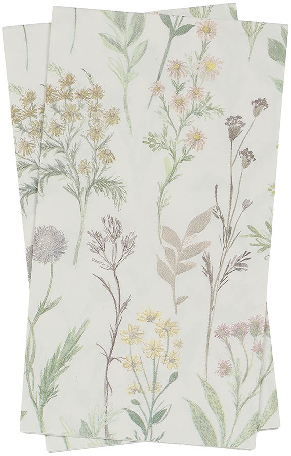 Rektangulære papirservietter med et floralt motiv som tilfører borddekkingen et friskt og vårlig preg.