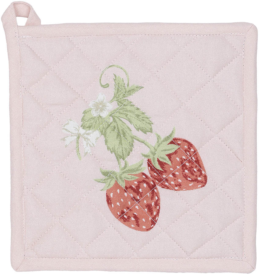 Rosa gryteklut med jordbærprint. Det søte motivet gir kjøkkenet en sommerlig stemning og passer like fint på hytta som hjemme.