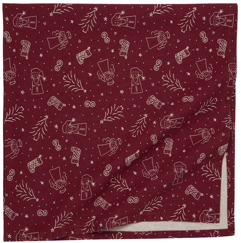 Liten juleduk med trykk av nisser, juletrær, stjerner og andre motiver vi tradisjonelt forbinder med julen. Duken er laget av 100 % bomull med reaktivt print – noe som gir klare farger og høy slitestyrke, selv etter gjentatte vask. Perfekt størrelse for sidebord, stuebord eller et mindre kjøkkenbord.