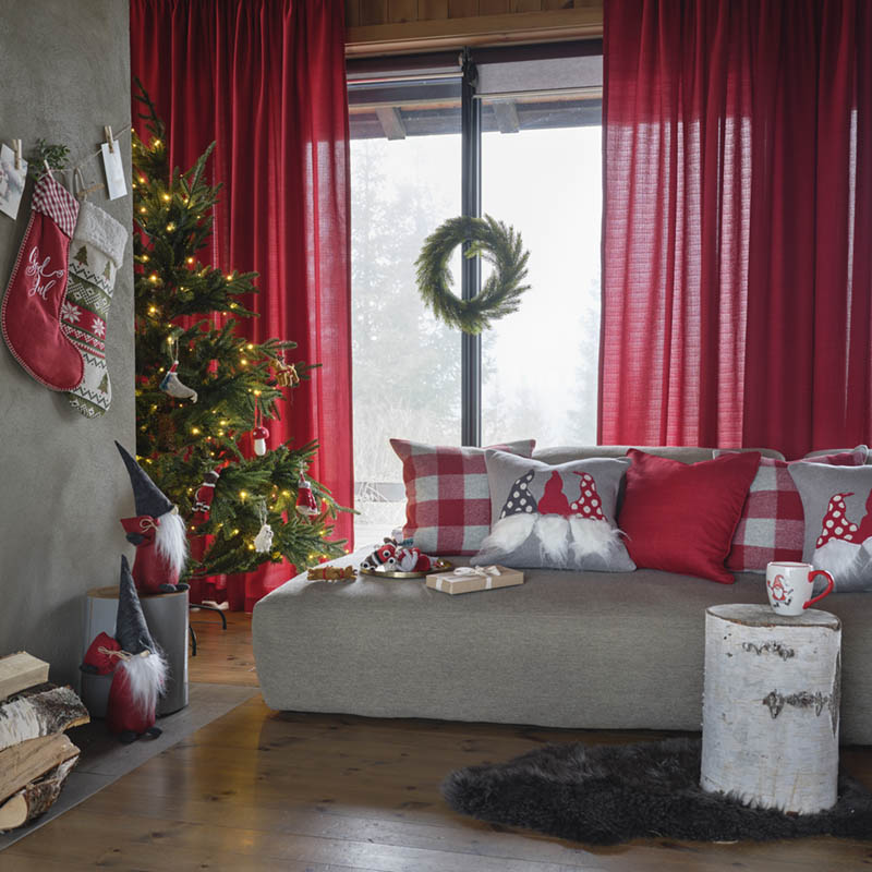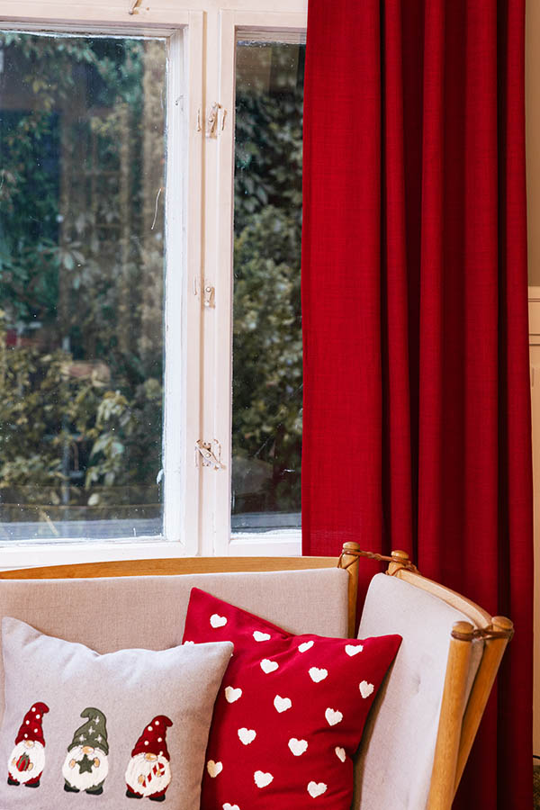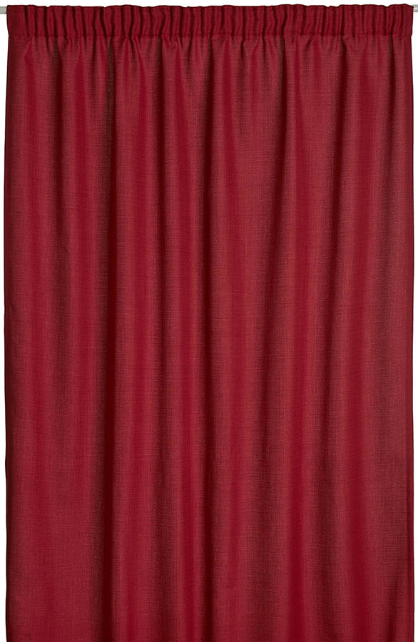 Tung og solid gardin i lettstelt kvalitet med lin-look som gir et naturlig uttrykk. Den julerøde fargen skaper en lun og koselig atmosfære i alle rom – et flott valg for å skape varme og stemning i julehjemmet ditt, år etter år. Gardinen har rynkebånd og kan henges opp både på gardinskinne og gardinstang.
