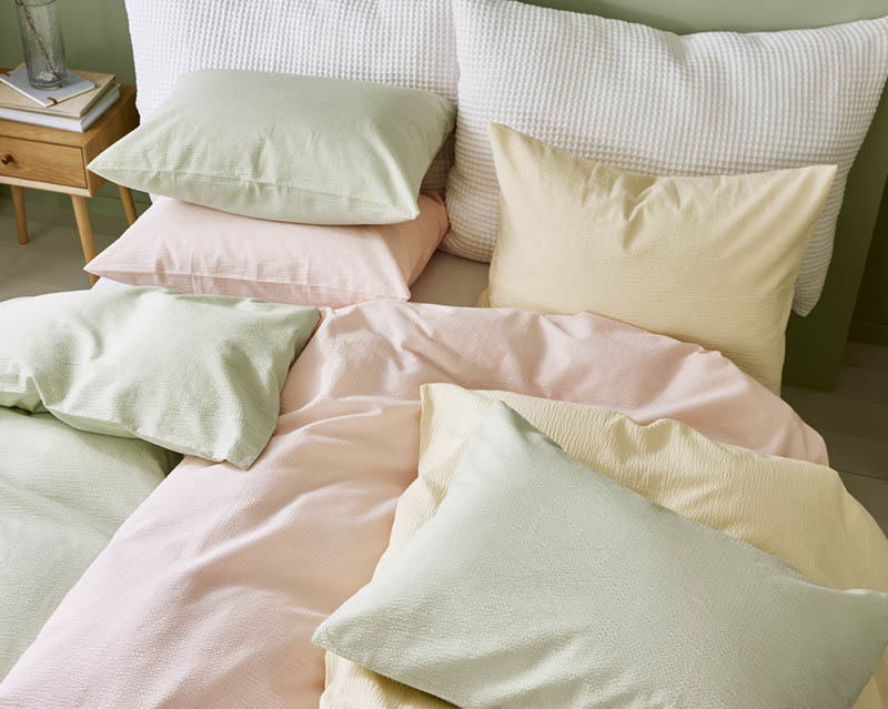 Sengetøy i bomullskrepp føles lett, luftig og krisp mot huden. Den bølgete strukturen puster godt og gir en svalende effekt. Perfekt for varme sommernetter eller for deg som ønsker ekstra svalt sengetøy året rundt. Kreppeffekten forsterkes etter vask, så sengesettet skal ikke strykes.