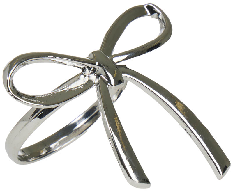Enkel og elegant serviettring med sløyfe på toppen. Det delikate designet gir bordet et sofistikert preg, og sølvfargen skaper et festlig blikkfang. Perfekt til tøyservietter, men fungerer også godt til papirservietter. Like fin til julebordet som til nyttårsbordet.