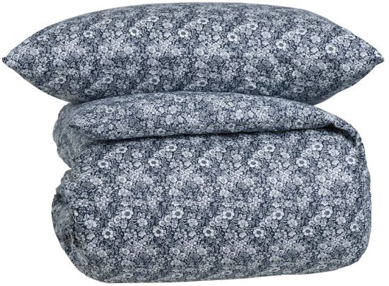 Sengesett i myk bomull. Har et småblomstret mønster på blå bunn. Kombiner gjerne med putevar og laken i matchende farger.