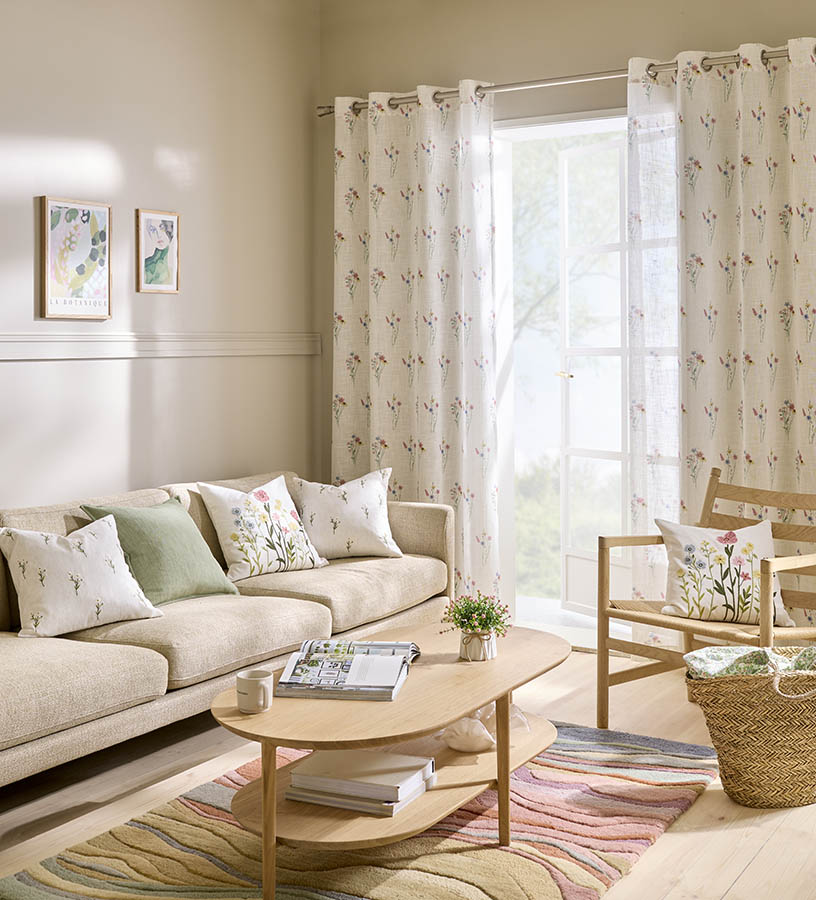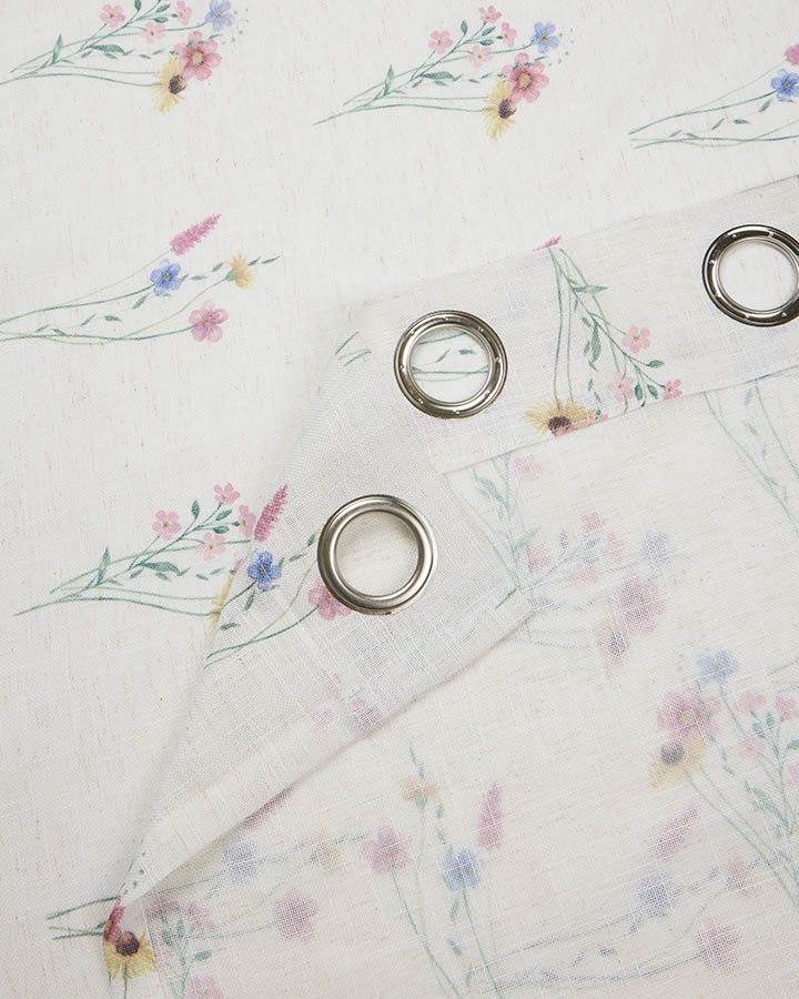Naturfarget putetrekk med broderte blomster i friske farger. Det nostalgiske, håndverksinspirerte designet gir en følelse av vår og blir et vakkert blikkfang i interiøret – enten hjemme eller på hytta.