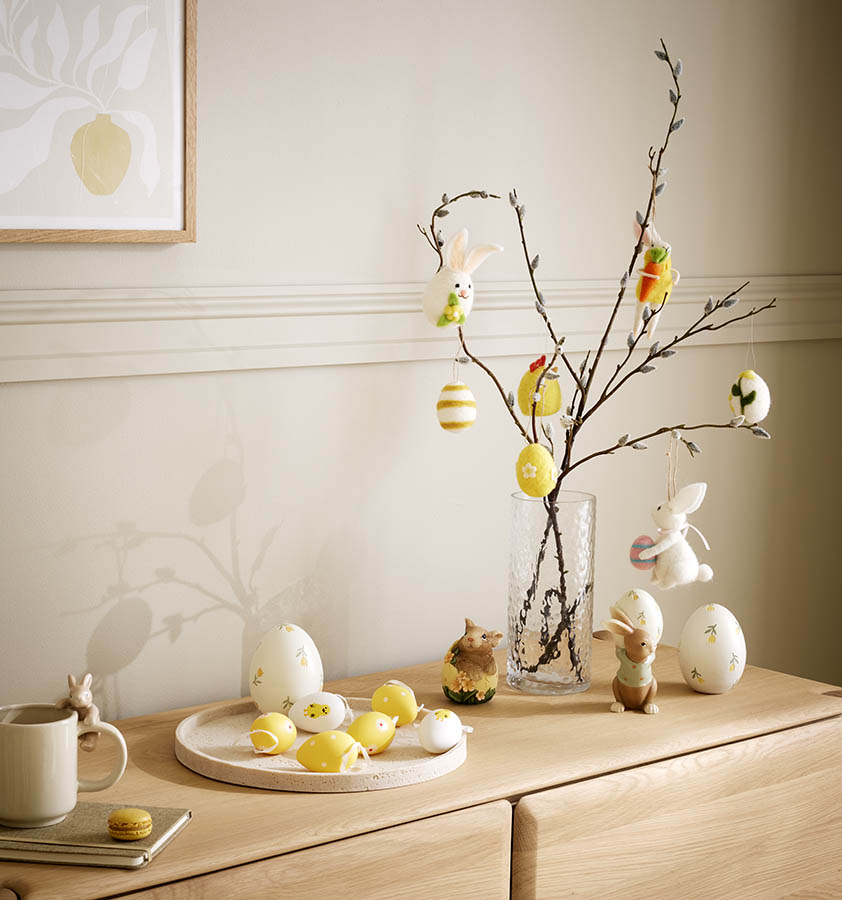 Superlette påskeegg til dekorering i påsken. Eggene er enkle å henge opp og passer godt på grener som trollhassel, gåsunger eller andre dekorative kvister. Settet leveres i en pen plastboks og inneholder to egg av hvert design.