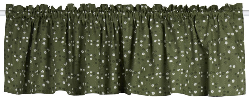 Søt gardinkappe med grønn bunnfarge og småblomstret mønster. Designet skaper en koselig atmosfære både hjemme og på hytta. Kappen har løpegang og kan tres direkte på en gardinstang, gardinspiral eller spennstang.