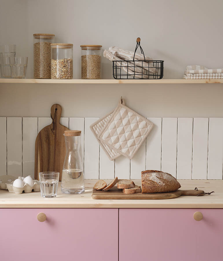 Elegant karaffel i minimalistisk design og praktisk form, laget av glass med et stilfullt rillemønster og lokk i kork. Perfekt for servering av vann, vin, juice, saft eller andre kalde drikker.