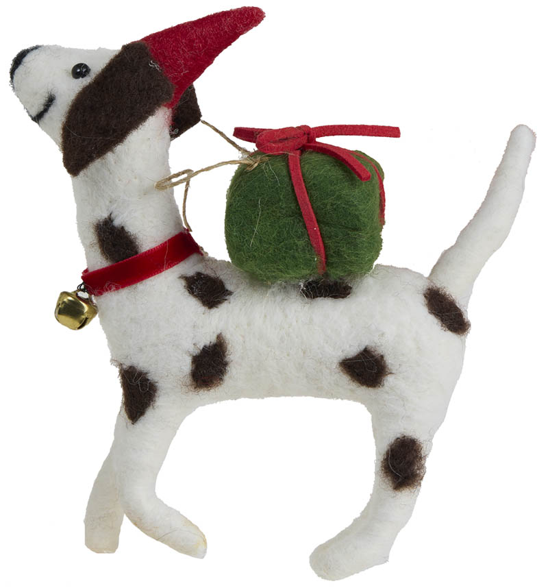 Sjarmerende dalmatiner med nisselue og julegave på ryggen – en leken figur som garantert sprer smil og glede i juleselskapet. Perfekt for hundeelskere og alle som elsker morsom julepynt. Passer like godt i juletreet, som pynt på en gave, eller som en koselig detalj i juledekorasjonen.