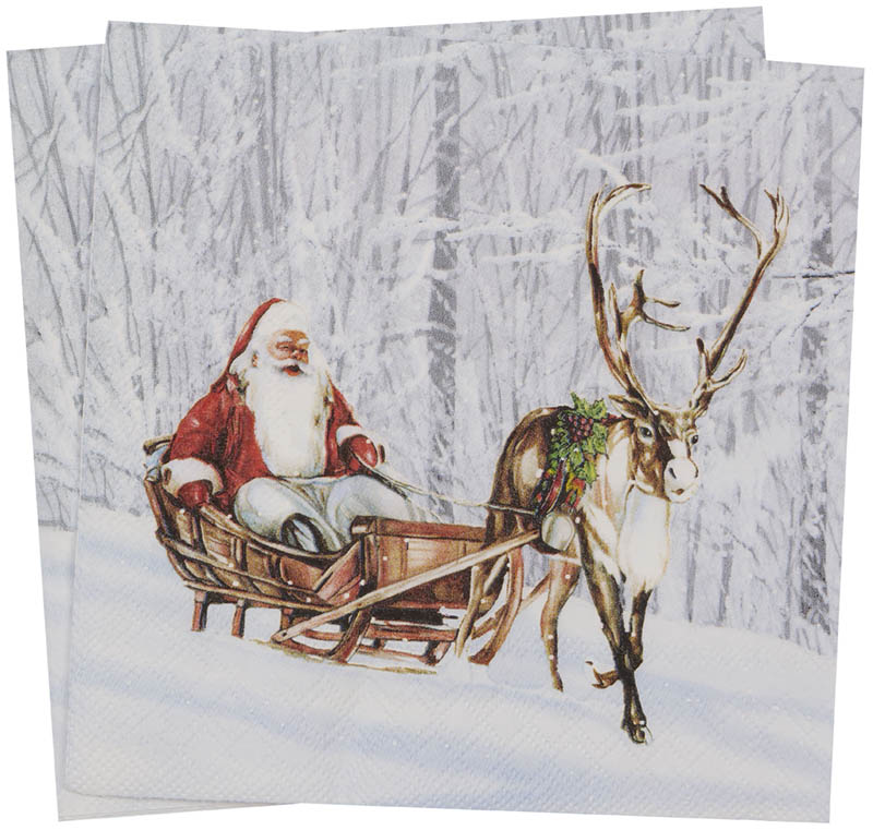 Papirservietter prydet med en koselig nisse og reinsdyr i en snøkledd skog – et klassisk julemotiv som skaper garantert stemning, enten du dekker bordet til frokost, lunsj eller middag i høytiden. Serviettene er også en flott liten gave som sprer juleglede.