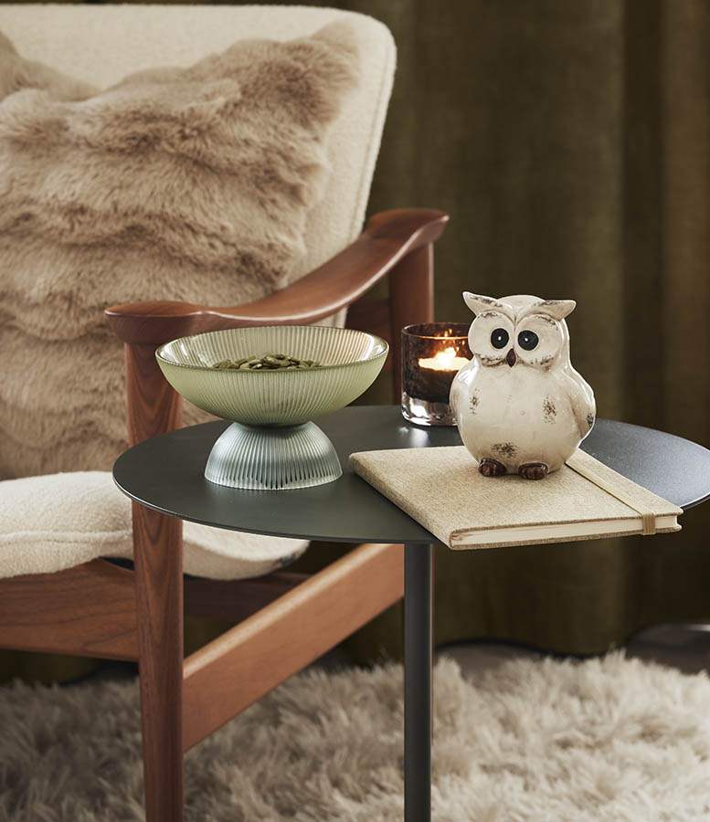 Lekker skål i glass med stett og et tynt, rillet mønster. Perfekt til servering av nøtter, godteri, syltetøy eller grønnsaker, men like fin som en dekorativ stylingdetalj – med eller uten innhold.