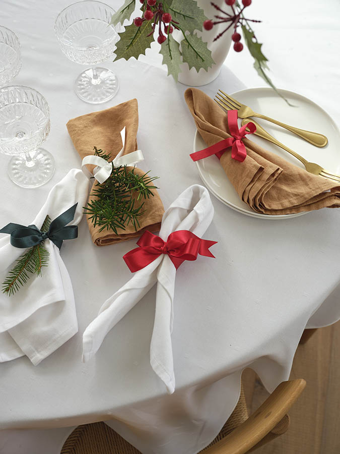 Å pynte med sløyfer i ulike former er en klassiker i juletiden. Sløyfer gir juleinteriøret et elegant og stilfullt preg. Med et satengbånd kan du lage sløyfer rundt kranser, lys, servietter og pakker. Det kan også brukes til å henge opp pynt, pepperkaker og annen dekor – eller som belte til luciakjolen. Bare fantasien setter grenser!