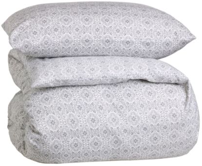 Damaskmønstret sengesett i myk bomullsflanell. Det vintageinspirerte mønsteret gir soverommet et tidløst og elegant preg, mens den børstede flanellen føles lun og behagelig mot huden. Perfekt for deg som ønsker å bringe både eleganse og kos inn på soverommet.