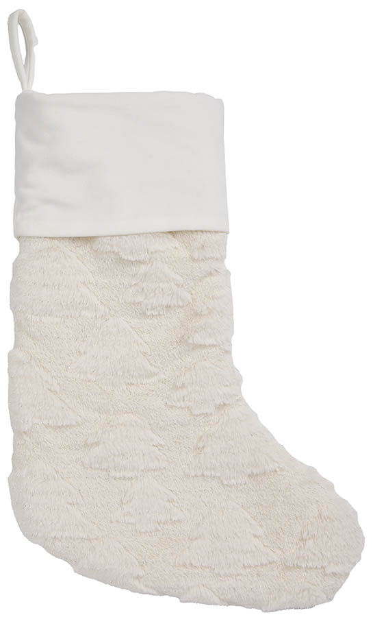 Elegant julestrømpe i myk fuskepels med et lett glitterdryss og preget mønster av juletrær. Perfekt til å henge over peisen, på sengegavlen eller en krok i rommet mens du venter i spenning på hva nissen legger oppi! Den fungerer også som en stilig detalj i juleinteriøret.