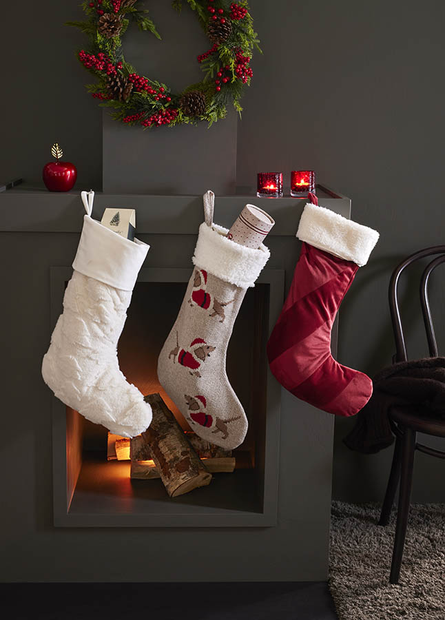Elegant julestrømpe i myk, rød velour med hvit, fluffy kant. Perfekt til å henge over peisen, på sengegavlen eller en krok i rommet mens du venter spent på hva nissen legger oppi! Den fungerer også som en stilig detalj i juleinteriøret.