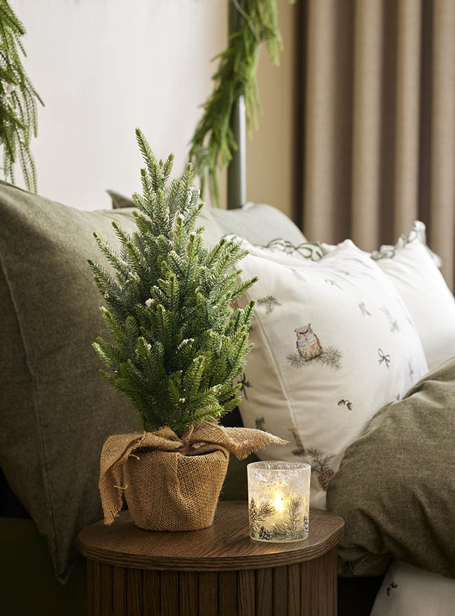 Nydelig lykt med vakkert motiv i malt stil. Lykten er laget av glass med frostet overflate og et dryss glitter som etterligner snø. Et iøynefallende design inspirert av vårt nordiske vinterlandskap. Lykten passer både til små og store telys. Kombiner gjerne med annen skogsinspirert dekor.