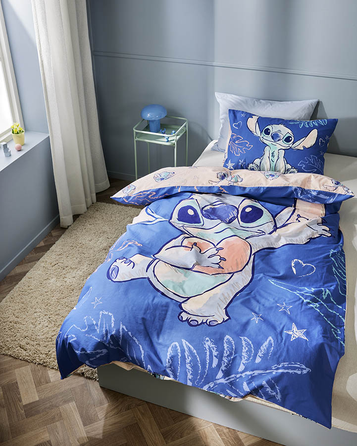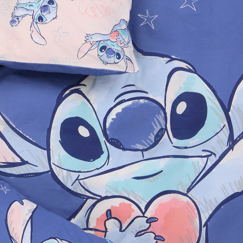 Barnesengesett av myk og slitesterk bomull. Sengesettet er trykket med den populære figuren Stitch, den morsomme og rampete romvesen-karakteren fra Disney-filmen Lilo & Stitch. Dette lekne og fargerike designet er perfekt for både små og store fans som elsker eventyr og sprell på barnerommet!