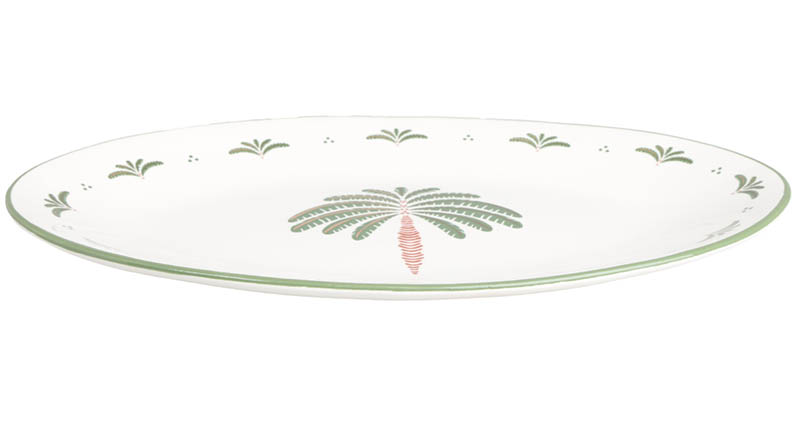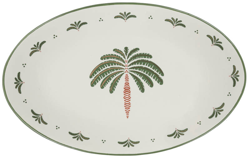 Serveringsfat med dekorativt palmedesign som gir bordet et eksotisk og sommerlig preg. Fatet har en ideell størrelse til frukt, tapas eller tilbehør til grillmaten.