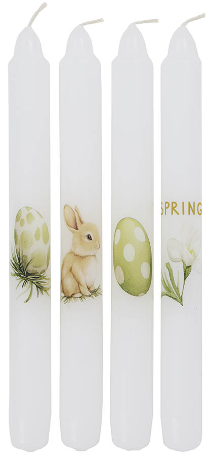 Dekorative kronelys med påskedesign. Lysene har et klassisk uttrykk og gir et stemningsfullt preg til borddekking og dekor i påsketiden.
