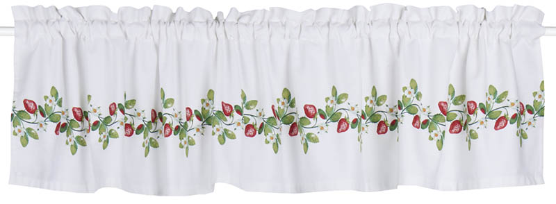 Søt gardinkappe med en vakker jordbærranke. Det klassiske mønsteret tilfører rommet en sommerlig stemning, og kappen passer like godt hjemme som på hytta.