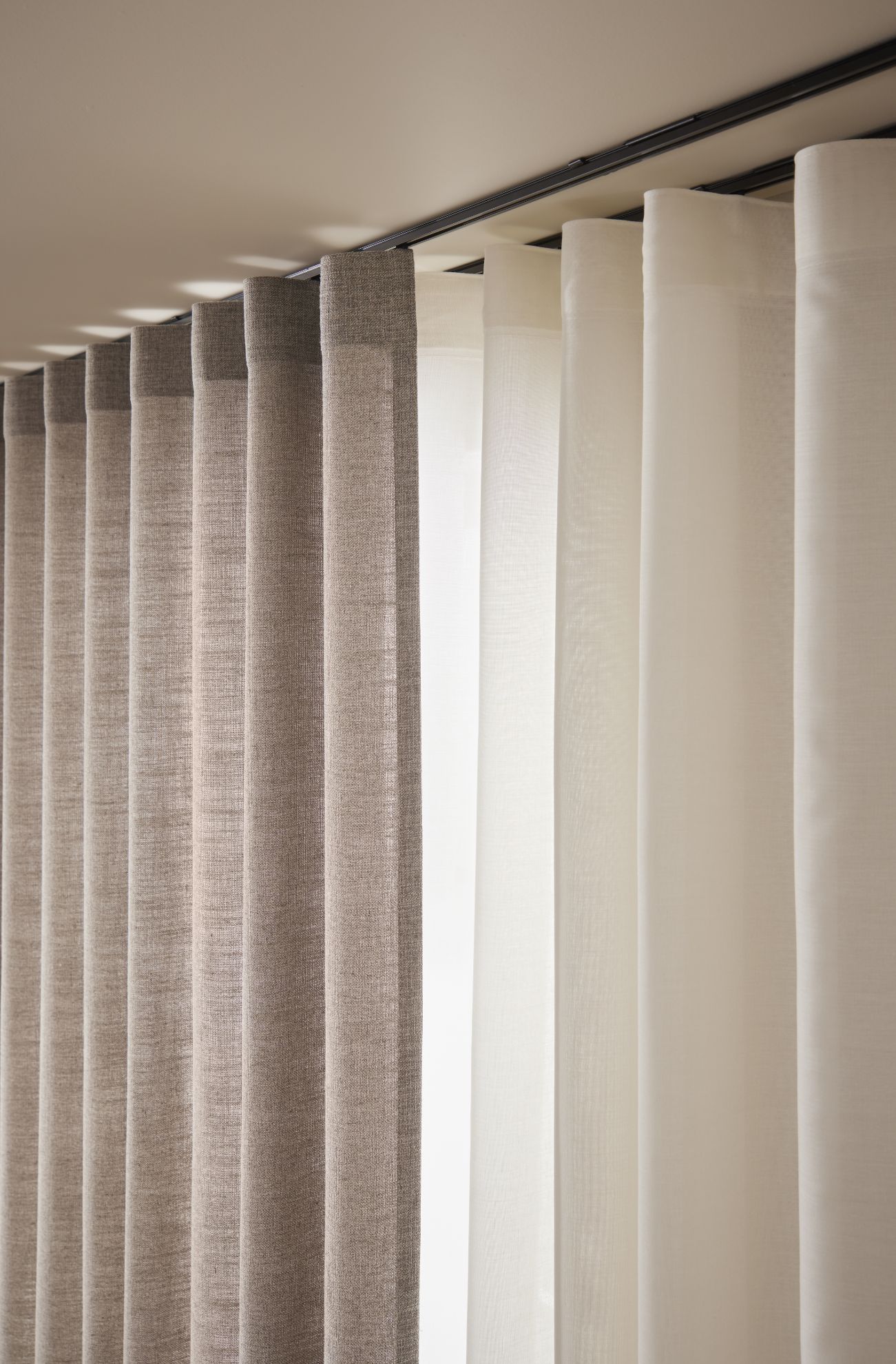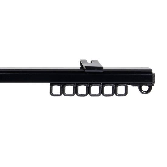 Gardinskinne for montering i tak. Kan brukes til oppheng av gardiner med rynkebånd, multibånd eller wavebånd. Skinnen monteres med beslag, og gardinene henges opp med rynkebåndskroker.