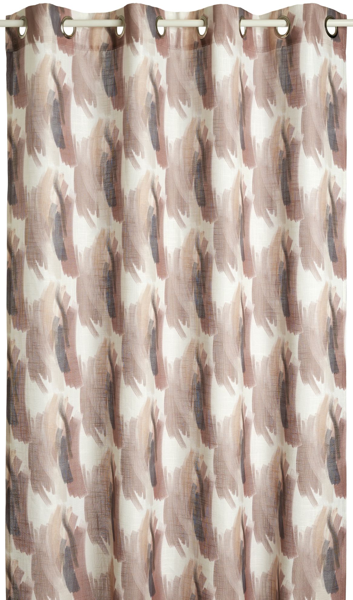 Stilig gardin med abstrakt mønster. Gardinen er digitaltrykket, noe som gjør at farger og detaljer blir ekstra klare og fremtredende. Tungt og pent fall, enkelt oppheng med maljer.