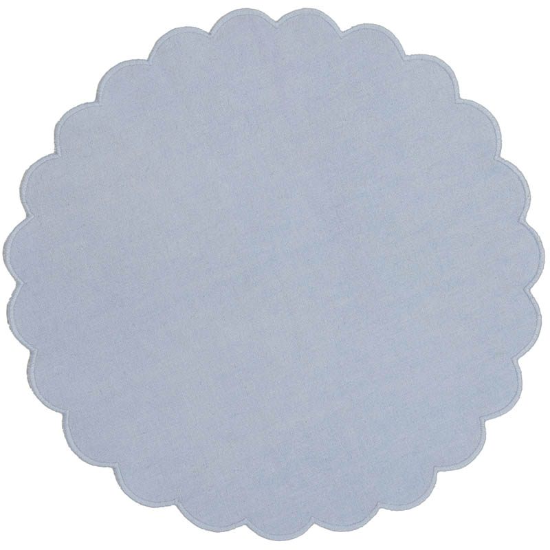 Rund tekstilserviett med dekorativ scallopkant. Det vakre designet gir bordet et romantisk uttrykk – perfekt til både hverdagsmåltider og festlige anledninger. Kommer i flere delikate farger – miks og match for et personlig uttrykk.