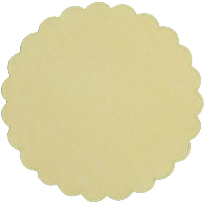 Rund tekstilserviett med dekorativ scallopkant. Det vakre designet gir bordet et romantisk uttrykk – perfekt til både hverdagsmåltider og festlige anledninger. Kommer i flere delikate farger – miks og match for et personlig uttrykk.