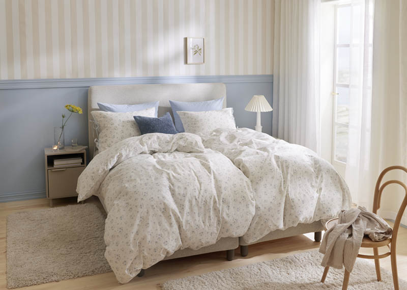 Bomullssengetøy føles mykt og luftig mot huden. Den glatte, men matte overflaten gir et avslappet uttrykk på soverommet. Kvaliteten finnes i mange farger og mønstre, og er behagelig året rundt.