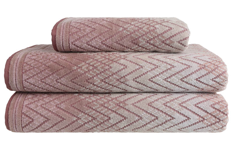 Sikksakkmønstret håndkle i tykk, myk bomullsfrotté med god absorberingsevne. Det unike designet er vevet med garn i flere nyanser, og det pregede sikksakkmønsteret tilfører ekstra tekstur og dybde.