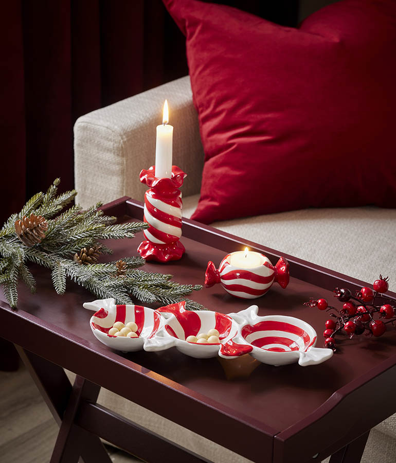 Godteriformet lysestake med polkastriper – et sjarmerende innslag på bordet i høytiden. Perfekt for deg som liker leken julepynt med et dryss av nostalgi. Kombiner gjerne med andre produkter fra samme serie.