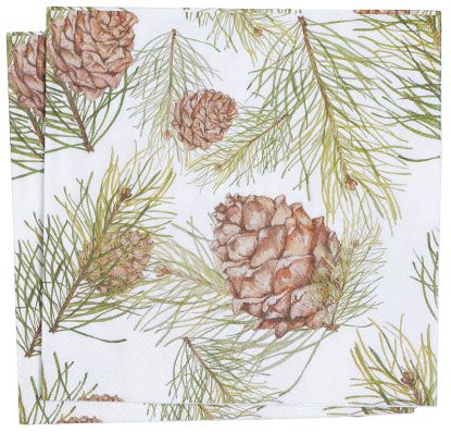 Papirservietter prydet med fine granbar og kongler – et tidløst motiv som passer hele sesongen, fra adventstiden til langt utpå nyåret. Perfekte til borddekking og flotte som gave.