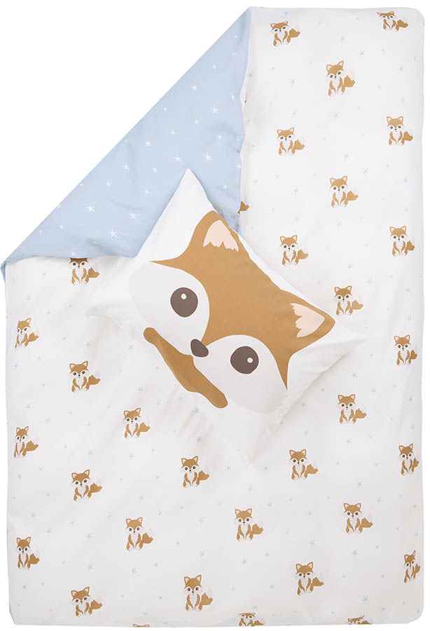 Barnesengesett til juniorseng i myk og slitesterk bomull. Putevaret har et stort motiv av en søt rev, mens dynetrekket er tosidig – den ene siden med et heldekkende mønster av små, søte rever, og den andre siden i lyseblå med stjerner. Det lekne designet skaper en koselig og innbydende atmosfære på barnerommet. Finnes i flere størrelser.