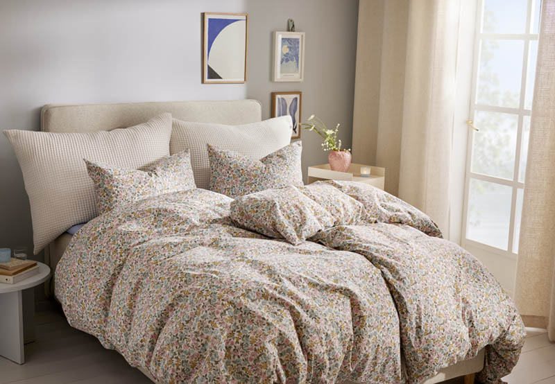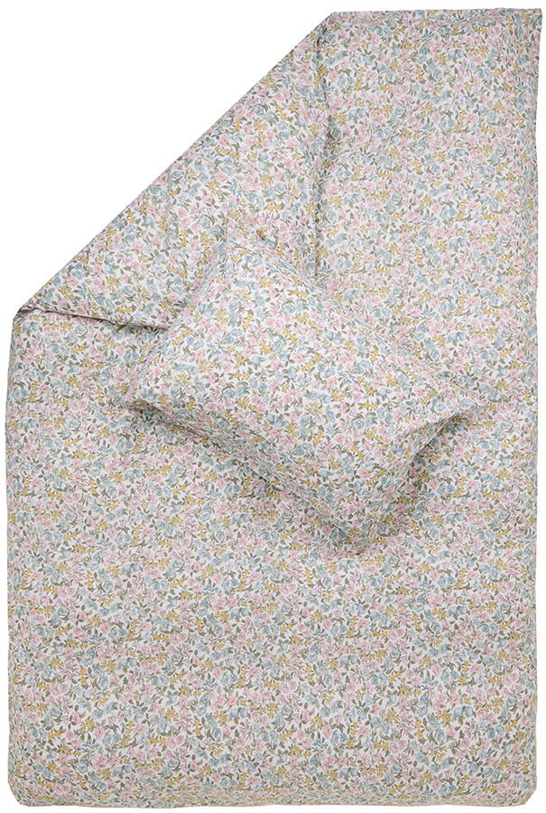 Sengesett med et delikat blomstermønster i pastellfargede toner. Designet skaper et sommerlig og lett feminint uttrykk på soverommet, mens de fine fargene og mønsteret gir en beroligende atmosfære – perfekt for avslapning. Sengesettet er laget av myk, slitesterk bomull.