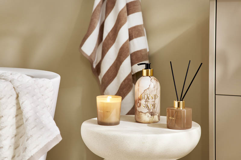 Mild håndsåpe uten allergener. Såpen gir silkemyke hender, og etterlater en svak duft av White linen. Duften White linen er en pudrete, muskaktig blomsterduft av fiol og appelsinblomst, med hint av bomull og innslag av jasmin og liljeaksenter. Såpen kommer i en delikat dispenser med marmormønster. Egner seg på både bad og kjøkken. Kombiner gjerne med duftlys og romduft i samme serie.