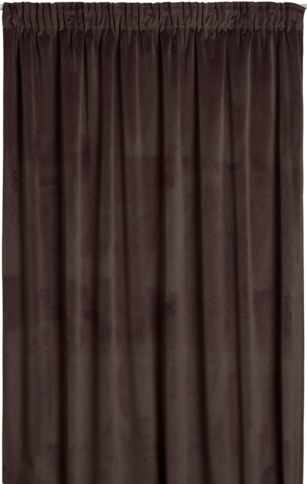 Brun rynkebåndsgardin i velur