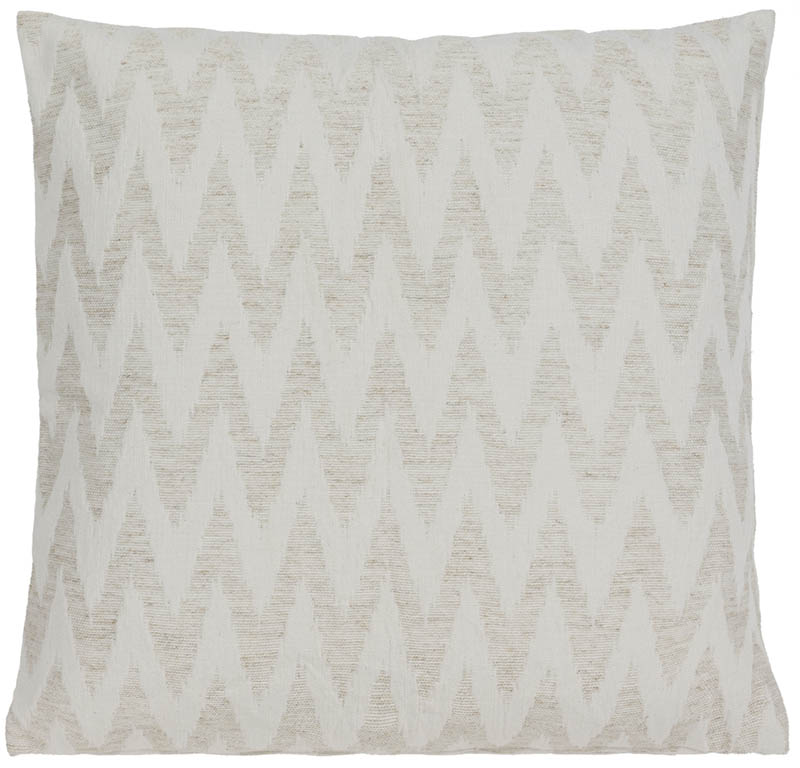 Naturfarget putetrekk med vevd sikksakkmønster. Stoffet består av en blanding av materialer som gir puten tekstur og en naturlig, lett røff overflate. De nøytrale fargene gjør det enkelt å kombinere med andre puter, enten i sofaen eller i sengen.