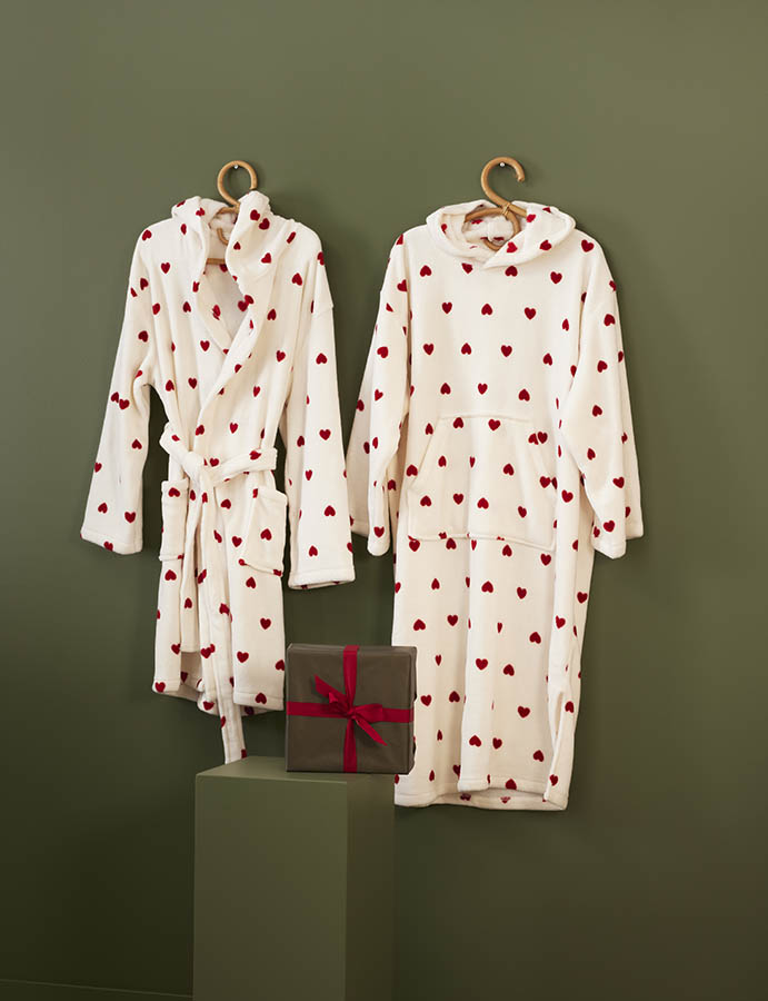 Morgenkåpe i fleece med hjerter